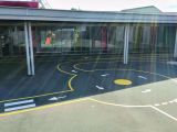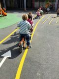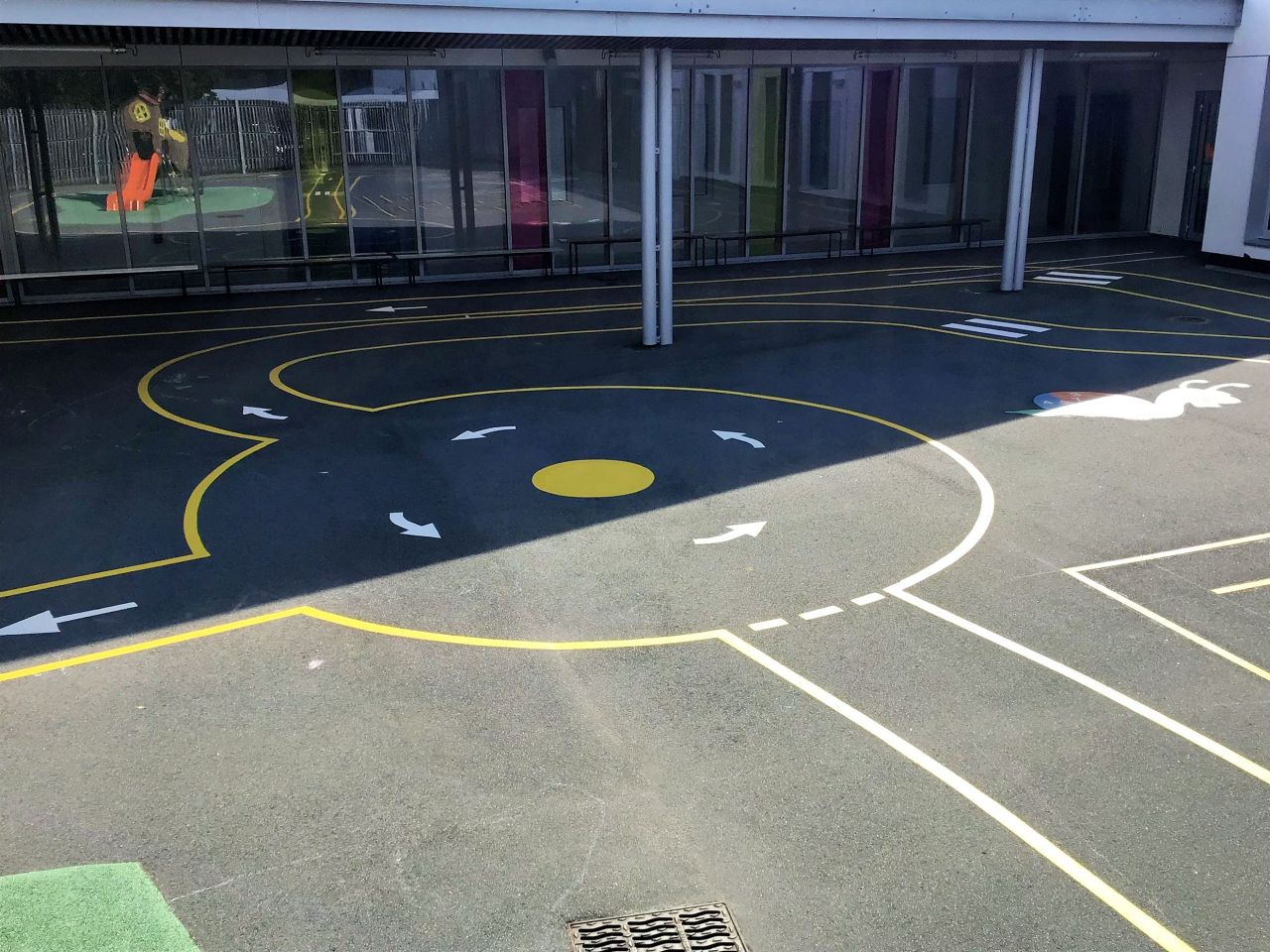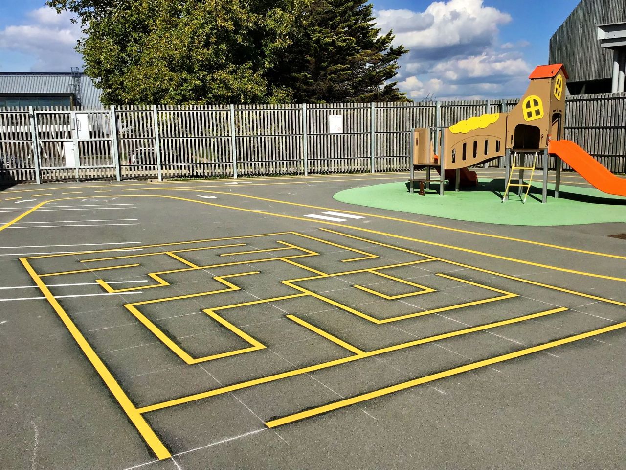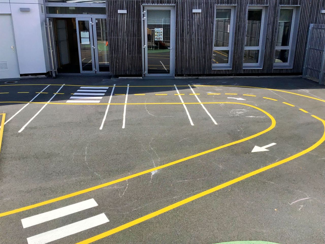 Depuis la semaine dernière, il y a des nouveaux tracés dans la cour.